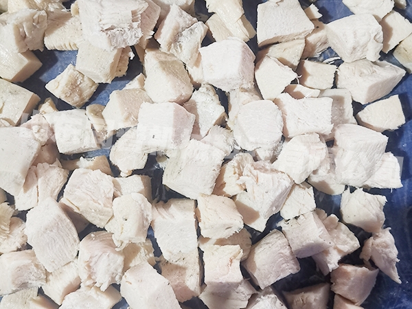 現(xiàn)在食品廠逐漸機(jī)械化生產(chǎn)雞胸肉切丁 、雞胸肉切條、雞胸肉切片等等,因?yàn)槿斯こ杀举M(fèi)用高、生產(chǎn)效率又低等
