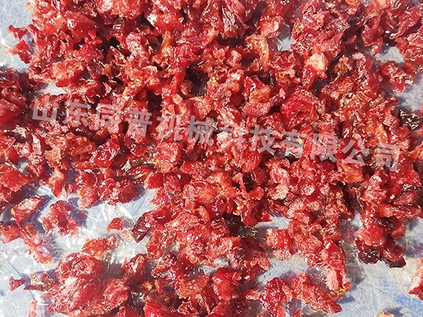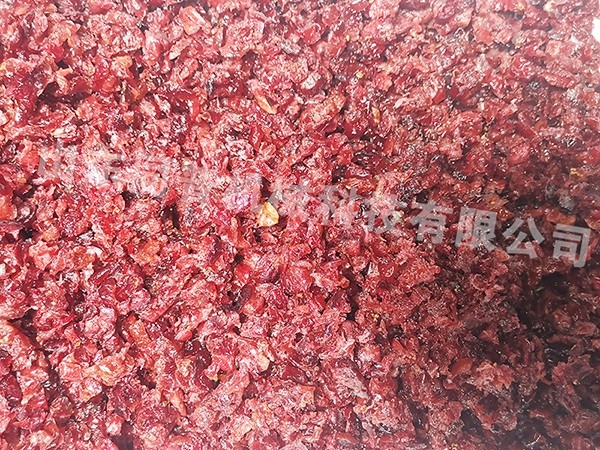 蔓越莓切丁,因為這個產品糖分太大了,我們都抱著試試的態度進行了切割,結果我們沒想到的是,來試機的客戶非常滿意,切出來的效果也是一粒一粒的,符合很多老板們的理想設備。