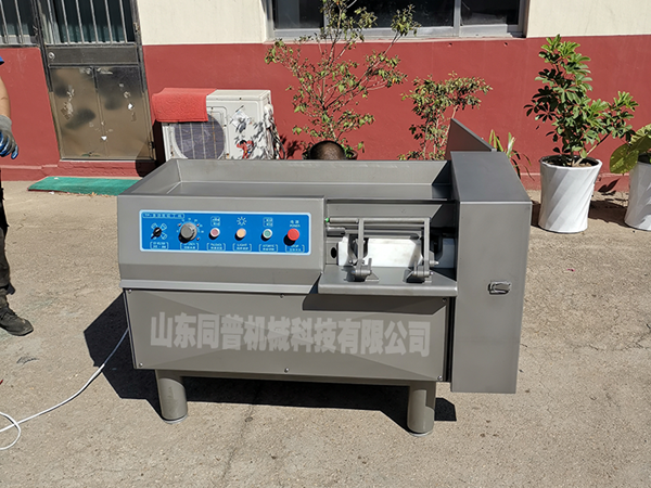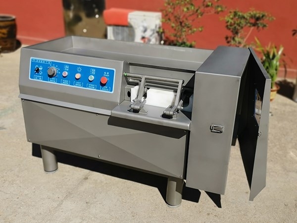 切丁機(jī)是肉類制品生產(chǎn)制作工藝中的一個重要設(shè)備。將肉塊,脂肪,蔬菜類等主要原料,切割成用戶所需要的片,條,塊等形狀,調(diào)整刀柵的間隔尺寸可切出不同尺寸的產(chǎn)品。產(chǎn)品長度尺寸的大小由推進(jìn)速度旋鈕來調(diào)節(jié)。