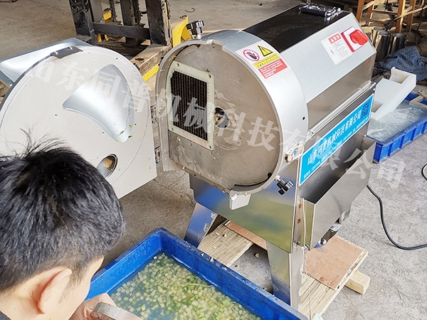 葉類蔬菜:有輸送帶輸送原料,轉速和皮帶速度分別有變頻獨立控制,切菜尺寸可以調整1-60mm。