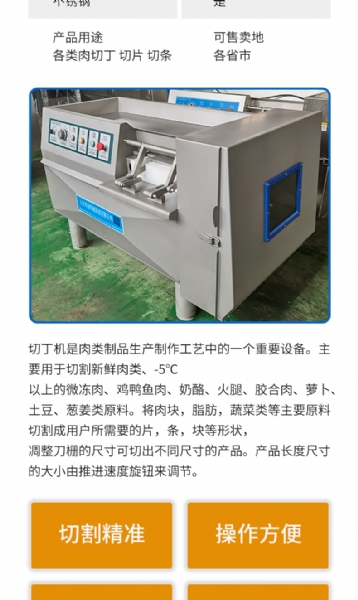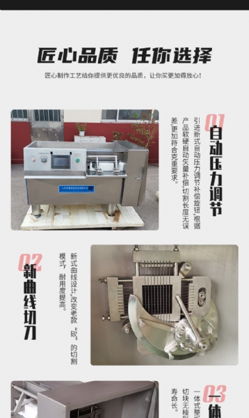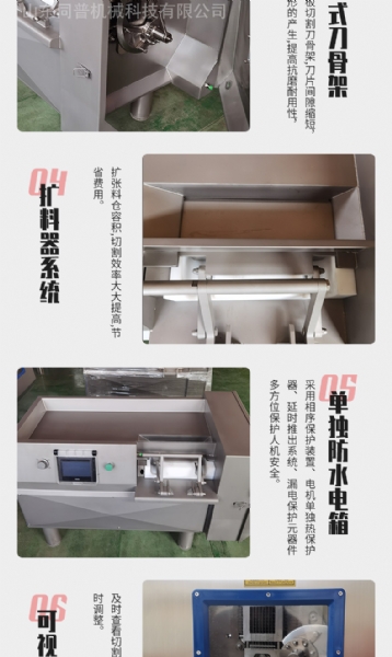 TP系列切丁機引德國外先進技術進行設計制造,結構合理,性能優良,該設備能做到高精度切割,產品經過三維一次性切割成“片”“條”“丁”狀,且工作效率極高,還可切割蔬菜、水果、根莖類等產品,真正實現一機多用,為用戶帶來巨大效益,同普機械在多年的研發生產過程中,致力于切