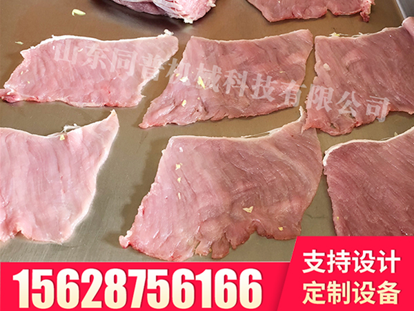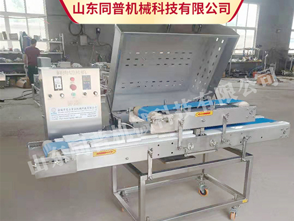 鮮肉切片機可以切割不同厚度要求的肉片,可以加工里脊肉片、雪花肉片、無骨雞柳等產品的切片。可以搭配切條機進行雞柳條、雞肉絲等產品的切割。更省力、節省人工成本、產量高。適合肉聯廠、餐飲中央廚房、學校機關單位食堂、酒樓、超市、肉市場加工、食品加工廠等適用,切割薄厚可以調整,變頻器調速,切割物品薄厚均勻。切割面光滑,碎料少。設置有安全按鈕,門打開時整臺設備自動斷電。創新設計,皮帶可拆卸,拆裝方便,容易清洗,無衛生死角。自動接料輸送帶,方便連續作業。