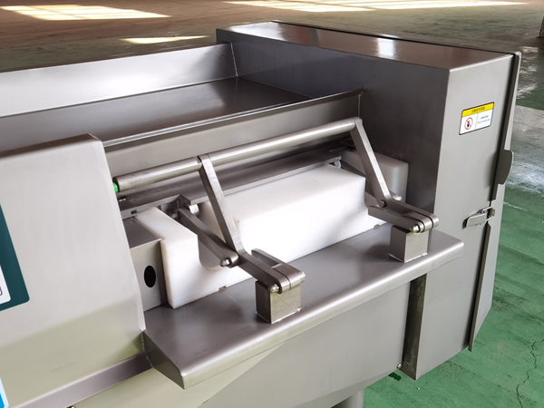 切丁機(jī)是肉類(lèi)制品生產(chǎn)制作工藝中的一個(gè)重要設(shè)備。將肉塊,脂肪,蔬菜類(lèi)等主要原料,切割成用戶(hù)所需要的片,條,塊等形狀,調(diào)整間隔尺寸可切出不同尺寸的產(chǎn)品。產(chǎn)品長(zhǎng)度尺寸的大小由推進(jìn)速度旋鈕來(lái)調(diào)節(jié)。