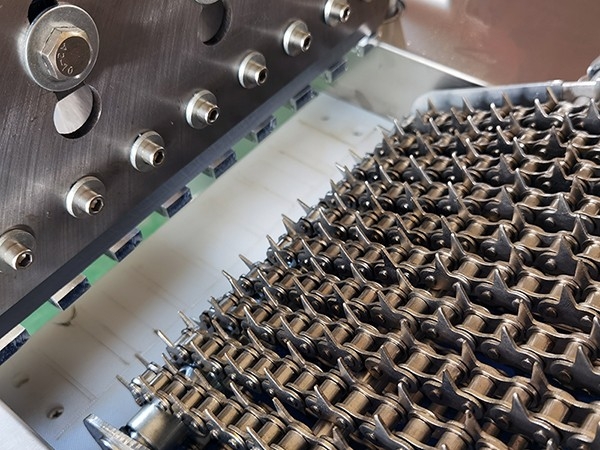 6、本機采用履帶輸送,履帶加厚更耐用,大大增加了機器的使用壽命。